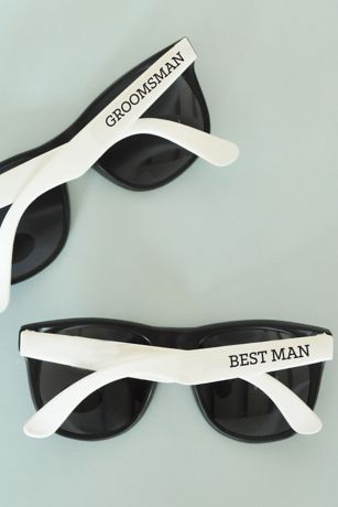 - Includes 6 white sunglasses and 24 labels printed in black ink (1 Groom, 6 Groomsman, 6 Bachelor, 2 Best Man, 1 Ring Security, 1 Jr. Groomsman, 1 Ring Bearer, 6 Team Groom)