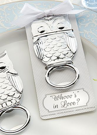 Owl bet you are! And you're looking for a practical wedding favor with a wise owl to remind guests whooo's in love every time they pop the top on a bottle. Artfully crafted metal owl bottle opener with chrome finish.