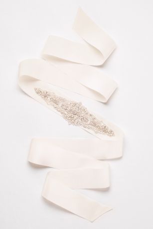 Wide Grosgrain Ribbon Sash with Statement Beading