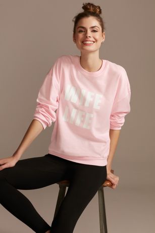 Perfect for hanging at home or heading to your honeymoon, you'll love wearing this relaxed-fit crew neck "Wife Life" sweatshirt.