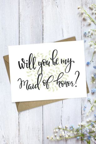 Ask your best friend if she'll be your maid of honor with this thoughtful calligraphy script card.