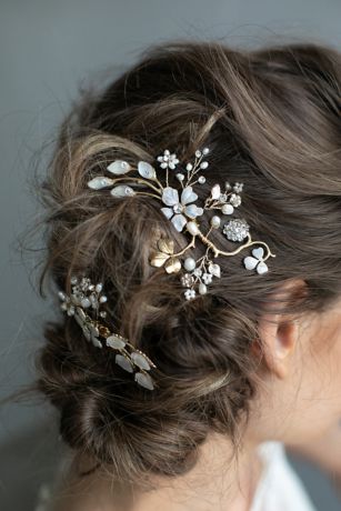 Blooming with gold-dipped flowers and Swarovski crystal sprigs, this comb creates an ethereal wedding-day look.