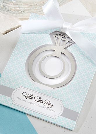 One of our most fabulous favors for when he puts a ring on it! A big hit at bridal showers, our engagement bling book mark puts a ring in the hands of every guest, who may become both well-read and well-wed! Engaging, openwork engagement ring bookmark crafted from lightweight metal with brushed-satin finish.