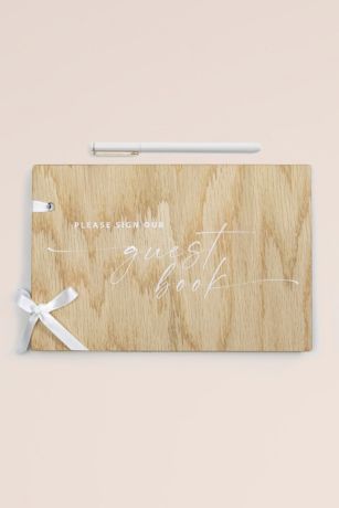 A beautiful keepsake for the newlyweds, this wooden guest book is tied with a satin ribbon and includes 35 blank white pages.