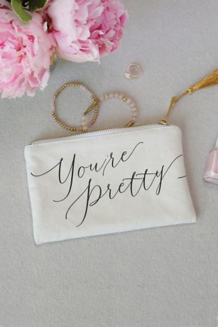Printed with the phrase "you're pretty," this makeup bag is a great gift for the bride, bridesmaids, or mother of the bride or groom.